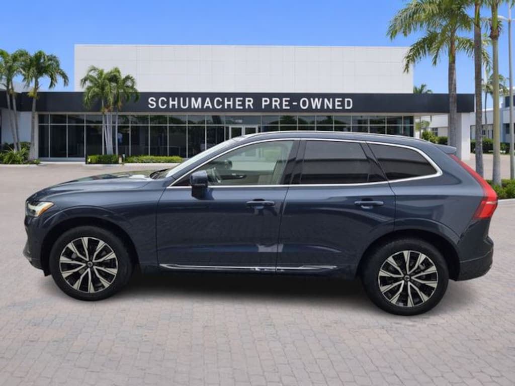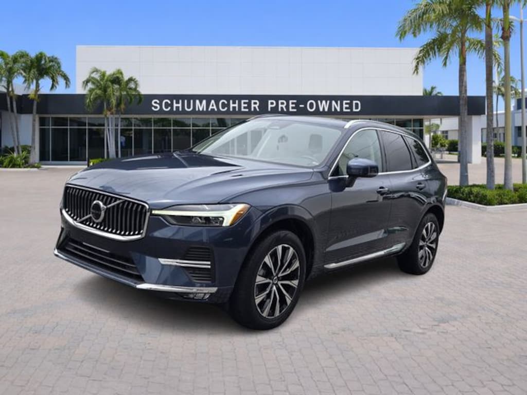 2023 Volvo XC60 B5 Plus Bright Theme Denim Blue Metallic CARFAX One-Owner. Clean CARFAX. Certified. AWD Automatic with Geartronic 2.0L I4 Turbocharged XC60 B5 Plus Bright Theme, 4D Sport Utility, 2.0L I4 Turbocharged, Automatic with Geartronic, AWD, Denim Blue Metallic, Blond w/Leather Upholstery (UA), 10 Speakers, 4-Wheel Disc Brakes, ABS brakes, Air Conditioning, Alloy wheels, AM/FM radio: SiriusXM, Anti-whiplash front head restraints, Apple CarPlay, Auto High-beam Headlights, Auto-dimming door mirrors, Auto-dimming Rear-View mirror, Automatic temperature control, Brake assist, Bumpers: body-color, Delay-off headlights, Driver door bin, Driver vanity mirror, Dual front impact airbags, Dual front side impact airbags, Electronic Stability Control, Emergency communication system: Volvo Cars App w/4 Year Subscription, Exterior Parking Camera Rear, Four wheel independent suspension, Front anti-roll bar, Front Bucket Seats, Front Center Armrest, Front dual zone A/C, Front fog lights, Front reading lights, Fully automatic headlights, Garage door transmitter: HomeLink, Genuine wood console insert, Genuine wood dashboard insert, Heated door mirrors, Heated Front Bucket Seats, Heated front seats, Illuminated entry, Knee airbag, Leather Shift Knob, Leather Upholstery, Low tire pressure warning, Memory seat, Occupant sensing airbag, Outside temperature display, Overhead airbag, Panic alarm, Passenger door bin, Passenger vanity mirror, Power door mirrors, Power driver seat, Power moonroof, Power passenger seat, Power steering, Power windows, Radio data system, Radio: High Performance Audio System, Rain sensing wipers, Rear anti-roll bar, Rear fog lights, Rear reading lights, Rear seat center armrest, Rear window defroster, Rear window wiper, Remote keyless entry, Security system, Speed control, Split folding rear seat, Spoiler, Steering wheel mounted audio controls, Tachometer, Telescoping steering wheel, Tilt steering wheel, Traction control, Trip computer, Turn signal indicator mirrors, Variably intermittent wipers, Wheels: 19" 5-V Spoke Black Diamond Cut Alloy.