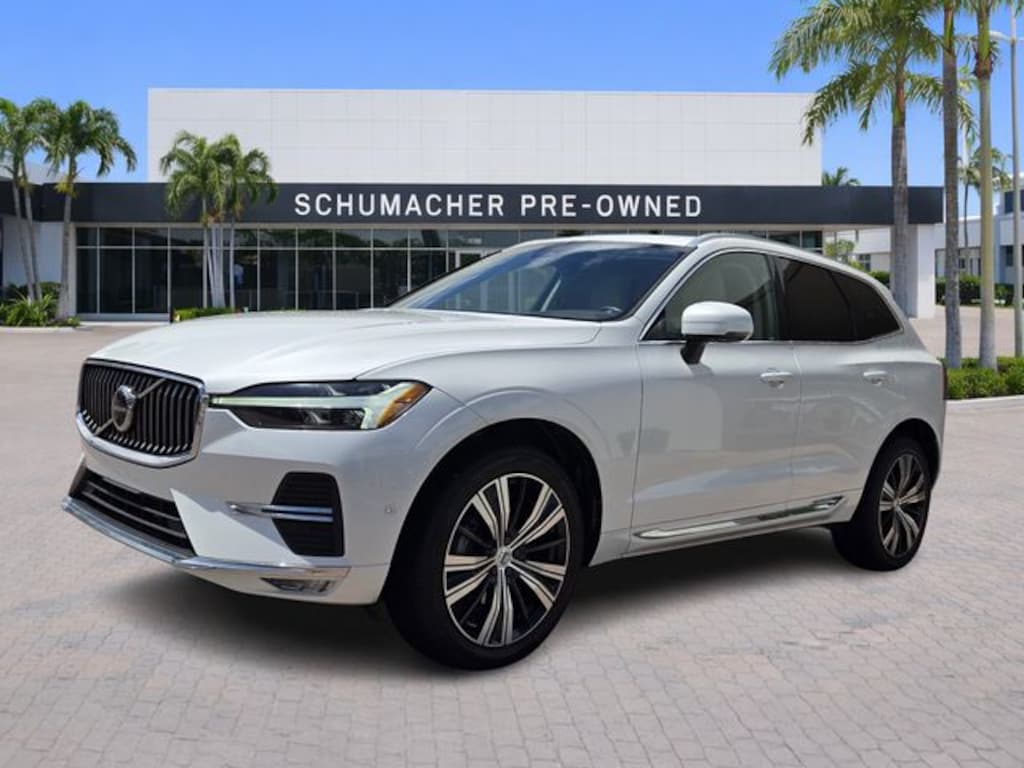 2023 Volvo XC60 B5 Plus Bright Theme Crystal White Metallic CARFAX One-Owner. Certified. FWD Automatic with Geartronic 2.0L I4 Turbocharged XC60 B5 Plus Bright Theme, 4D Sport Utility, 2.0L I4 Turbocharged, Automatic with Geartronic, FWD, Crystal White Metallic, Blond w/Leather Upholstery (UA), 10 Speakers, 4-Wheel Disc Brakes, ABS brakes, Air Conditioning, Air Purifier, Alloy wheels, AM/FM radio: SiriusXM, Anti-whiplash front head restraints, Apple CarPlay, Auto High-beam Headlights, Auto-dimming door mirrors, Auto-dimming Rear-View mirror, Automatic temperature control, Brake assist, Bumper Cover, Bumpers: body-color, Cargo Tray, Delay-off headlights, Driver door bin, Driver vanity mirror, Dual front impact airbags, Dual front side impact airbags, Electronic Stability Control, Emergency communication system: Volvo Cars App w/4 Year Subscription, Exterior Parking Camera Rear, First Aid Kit, Four wheel independent suspension, Front anti-roll bar, Front Bucket Seats, Front Center Armrest, Front dual zone A/C, Front fog lights, Front reading lights, Fully automatic headlights, Garage door transmitter: HomeLink, Genuine wood console insert, Genuine wood dashboard insert, Heated door mirrors, Illuminated entry, Integrated 2 Outer Position 2nd Row Booster Cushions, Knee airbag, Leather Shift Knob, Leather Upholstery, Low tire pressure warning, Luggage Cover, Memory seat, Occupant sensing airbag, Outside temperature display, Overhead airbag, Panic alarm, Passenger door bin, Passenger vanity mirror, Power door mirrors, Power driver seat, Power moonroof, Power Operated Tailgate, Power passenger seat, Power steering, Power windows, Protection Package Premier, Radio data system, Radio: harman/kardon Premium Sound, Radio: High Performance Audio System, Rain sensing wipers, Rear anti-roll bar, Rear fog lights, Rear reading lights, Rear seat center armrest, Rear window defroster, Rear window wiper, Remote keyless entry, Rubber Floor Mats, Security system, Speed control, Split folding rear seat, Spoiler, Steering wheel mounted audio controls, Tachometer, Telescoping steering wheel, Tilt steering wheel, Traction control, Trip computer, Turn signal indicator mirrors, Variably intermittent wipers, Wheel Locks, Wheels: 19" 5-V Spoke Black Diamond Cut Alloy, Wheels: 20" 5-Multi Spoke Black Diamond Cut Alloy.
