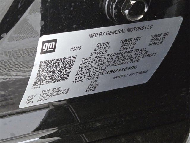 Onyx Black 2025 GMC Sierra EV Denali AWD 1-Speed Automatic Electric**0 cash down , payments are plus tax tag fees and any additional options are extra.WE DELIVER TO YOUR HOME OR OFFICE !!!....Back up Camera, Bluetooth, 11.63 Axle Ratio, 4-Wheel Disc Brakes, 7 Speakers, 8-Way Power Driver Seat w/4-Way Power Lumbar, 8-Way Power Passenger Seat w/4-Way Power Lumbar, ABS brakes, Adaptive suspension, Air Conditioning, Alloy wheels, AM/FM radio: SiriusXM with 360L, Auto High-beam Headlights, Auto-dimming Rear-View mirror, Auto-leveling suspension, Automatic temperature control, Brake assist, Delay-off headlights, Driver & Front Passenger Ventilated Seats, Driver door bin, Driver vanity mirror, Dual front impact airbags, Dual front side impact airbags, Electronic Stability Control, Emergency communication system: OnStar, Four wheel independent suspension, Front & Rear Adaptive Air Ride Suspension, Front anti-roll bar, Front Bucket Seats, Front Bucket Seats w/Center Console, Front Center Armrest w/Storage, Front dual zone A/C, Front fog lights, Front reading lights, Fully automatic headlights, Garage door transmitter, Genuine wood console insert, Genuine wood dashboard insert, Heads-Up Display, Heated door mirrors, Heated Front Driver & Passenger Seats, Heated front seats, Heated rear seats, Heated steering wheel, Low tire pressure warning, Memory seat, Navigation System, Occupant sensing airbag, Outside temperature display, Overhead airbag, Overhead console, Panic alarm, Passenger door bin, Passenger vanity mirror, Power door mirrors, Power driver seat, Power passenger seat, Power steering, Power windows, Premium 7-Speaker Bose Sound System, Premium audio system: Premium GMC Infotainment System, Premium Leather Alternative Seating Surfaces, Radio data system, Radio: 16.8 Diagonal Premium GMC Infotainment Sys, Rain sensing wipers, Rear fog lights, Rear reading lights, Rear seat center armrest, Rear step bumper, Rear window defroster, Remote keyless entry, Security system, SiriusXM w/360L Trial Subscription, Speed control, Speed-sensing steering, Split folding rear seat, Sport steering wheel, Steering wheel memory, Steering wheel mounted audio controls, Telescoping steering wheel, Tilt steering wheel, Traction control, Trip computer, Variably intermittent wipers, Ventilated front seats, and Wheels: 24 x 9.0 Aluminum. 70/59 City/Highway MPG Price includes: $500 - GM First Responder Cash Allowance Program. Exp. 01/04/2027