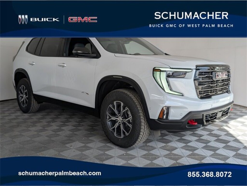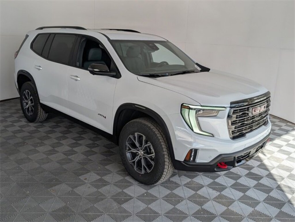 Glacier White Tricoat 2026 GMC Acadia AT4 AWD 8-Speed Automatic 2.5L DOHC AWD, Forest Strom.
