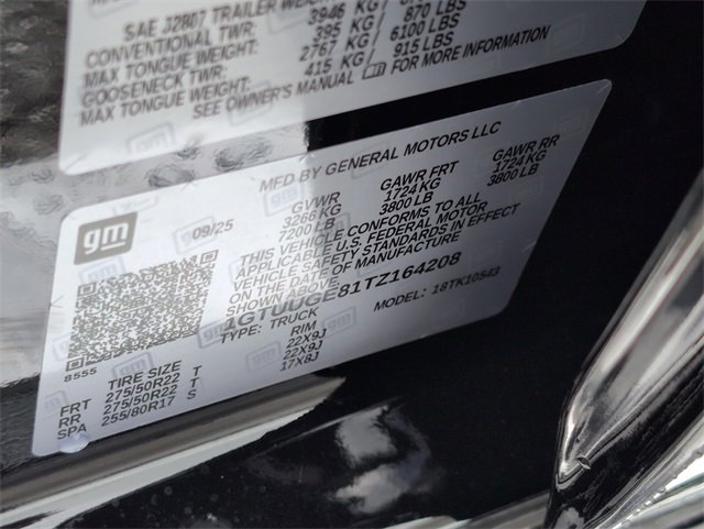 WE DELIVER TO YOUR HOME OR OFFICE !!!....Back up Camera, Bluetooth, Preferred Equipment Group 5SA (120-Volt Bed Mounted Power Outlet, 120-Volt Interior Power Outlet, 170 Amp Alternator, 2 Charge/Data USB Ports Inside Center Console, 2 Type-C Charge-Only Rear USB Ports, 2 USB Ports, Auto-Locking Rear Differential, Auxiliary External Transmission Oil Cooler, Bed View Camera, Chrome Header with Signature Denali Chrome Grille, Chrome Recovery Hooks, Chrome Wheel to Wheel Assist Steps, Color-Keyed Carpeting Floor Covering, Deep-Tinted Glass, Denali Premium Suspension with Adaptive Ride Control, Electric Rear-Window Defogger, Floor-Mounted Center Console, Front Rain-Sensing Wipers, HD Surround Vision, Heated 2nd Row Outboard Seats, Heated Driver and Front Outboard Passenger Seating, Heavy-Duty Air Filter, Hill Descent Control, Hitch View, in-Vehicle Trailering System App, Integrated Trailer Brake Controller, Keyless Open and Start, LED Cargo Area Lighting, OnStar Services Capable, Perimeter Lighting, Power Door Locks, Power Front Passenger Windows with Express Up/Down, Power Front Windows with Driver Express Up/Down, Power Rake and Telescoping Steering Column, Power Rear Windows with Express Down, Power Sliding Rear Window with Rear Defogger, Premium Bose 7-Speaker Sound System, Push Button Start, Rear Cross Traffic Braking, Rear Pedestrian Detection, Rear Wheelhouse Liners, Remote Vehicle Starter System, SiriusXM with 360L Trial Subscription, Spray-on Pickup Bedliner with GMC Logo, Steering Wheel Audio Controls, Theft Deterrent System (unauthorized Entry), Trailer Camera Provisions, Trailer Side Blind Zone Alert, Ultrasonic Front and Rear Park Assist, Universal Home Remote, Ventilated Driver and Front Passenger Seats, Wheels: 20 x 9 Multi-Dimensional Polished Aluminum, Wi-Fi Hotspot Capable, and Wireless Charging), Technology Package (Multicolor 15 Diagonal Head-Up Display and Rear Camera Mirror), Trailering Package (Hitch Guidance), 10-Speed Automatic, 4WD, Black Leather, 12-Way Power Driver Seat Adjuster with Lumbar, 12-Way Power Passenger Seat Adjuster with Lumbar, 22 High Gloss Black Wheels, 220 Amp Alternator, 3.23 Rear Axle Ratio, 4-Wheel Disc Brakes, 7 Speakers, ABS brakes, Adaptive suspension, Air Conditioning, Alloy wheels, AM/FM radio: SiriusXM with 360L, Apple CarPlay/Android Auto, Auto High-beam Headlights, Auto-dimming door mirrors, Auto-dimming Rear-View mirror, Automatic temperature control, Brake assist, Buckle to Drive, Bumpers: body-color, Compass, Delay-off headlights, Driver door bin, Driver Memory, Driver vanity mirror, Dual front impact airbags, Dual front side impact airbags, Electronic Stability Control, Emergency communication system: OnStar, Engine Block Heater, Enhanced Automatic Emergency Braking, Following Distance Indicator, Forge Perforated Leather Seat Trim, Forward Collision Alert, Front anti-roll bar, Front Bucket Seats, Front Center Armrest, Front dual zone A/C, Front fog lights, Front Pedestrian Braking, Front reading lights, Front wheel independent suspension, Fully automatic headlights, Garage door transmitter, Genuine wood console insert, Genuine wood dashboard insert, Genuine wood door panel insert, Heated door mirrors, Heated front seats, Heated rear seats, Heated steering wheel, Illuminated entry, IntelliBeam Automatic High Beam on/Off, Lane Keep Assist with Lane Departure Warning, Low tire pressure warning, Memory seat, Navigation System, Occupant sensing airbag, Outside temperature display, Overhead airbag, Overhead console, Panic alarm, Passenger door bin, Passenger vanity mirror, Power door mirrors, Power drive Price includes: $1750 - Buick & GMC Consumer Cash Program. Exp. 02/02/2026 $500 - GM Bonus Cash. Exp. 02/02/2026 $500 - GM