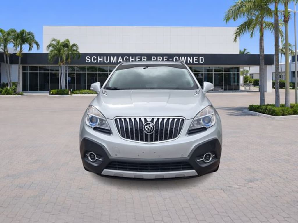 2015 Buick Encore Premium Quicksilver Metallic Clean CARFAX. FWD 6-Speed Automatic Electronic with Overdrive ECOTEC 1.4L I4 SMPI DOHC Turbocharged VVT Encore Premium, 4D Sport Utility, ECOTEC 1.4L I4 SMPI DOHC Turbocharged VVT, 6-Speed Automatic Electronic with Overdrive, FWD, Quicksilver Metallic, Ebony Leather, 3.53 Final Drive Axle Ratio, 4-Wheel Disc Brakes, 6-Way Power Driver Seat Adjuster, 6-Way Power Front Passenger Seat Adjuster, 7 Speakers, ABS brakes, Air Conditioning, Alloy wheels, AM/FM radio: SiriusXM, Auto-dimming Rear-View mirror, Automatic temperature control, Bose Premium 7-Speaker Audio System Feature, Brake assist, Bumpers: body-color, Carpeted Rear Cargo Mat, CD player, Compass, Delay-off headlights, Driver door bin, Driver vanity mirror, Driver's Seat Mounted Armrest, Dual front impact airbags, Dual front side impact airbags, Electronic Stability Control, Emergency communication system: OnStar Directions & Connections, Exterior Parking Camera Rear, Forward Collision Alert, Front anti-roll bar, Front Bucket Seats, Front dual zone A/C, Front fog lights, Front License Plate Bracket, Front reading lights, Front wheel independent suspension, Fully automatic headlights, Heated door mirrors, Heated Driver & Front Passenger Seats, Heated front seats, Heated steering wheel, Illuminated entry, Knee airbag, Lane Departure Warning System, Leather steering wheel, Leather-Appointed Seat Trim, Low tire pressure warning, Memory seat, Occupant sensing airbag, Outside temperature display, Overhead airbag, Panic alarm, Passenger door bin, Passenger vanity mirror, Power door mirrors, Power driver seat, Power passenger seat, Power steering, Power windows, Preferred Equipment Group 1SN, Premium audio system: IntelliLink, Radio data system, Radio: AM/FM Audio System w/MP3 CD Player, Radio: AM/FM Audio System w/Nav/Single CD Player, Rain sensing wipers, Rainsense Intermittent Front Wipers, Rear Cargo Net, Rear seat center armrest, Rear side impact airbag, Rear window defroster, Rear window wiper, Remote keyless entry, Ride & Handling Suspension, Roof rack: rails only, Security system, SiriusXM Satellite Radio, Speed control, Speed-sensing steering, Split folding rear seat, Spoiler, Steering wheel mounted audio controls, Tachometer, Telescoping steering wheel, Tilt steering wheel, Traction control, Trip computer, Turn signal indicator mirrors, Ultrasonic Front & Rear Park Assist, Variably intermittent wipers, Wheels: 18" 5-Spoke Painted Cast Aluminum.