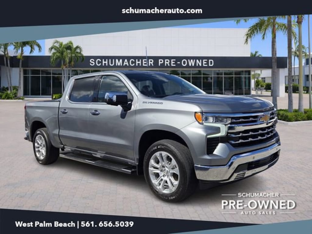 2023 Chevrolet Silverado 1500 LTZ Sterling Gray Metallic 4WD 10-Speed Automatic EcoTec3 5.3L V8 Silverado 1500 LTZ, 4D Crew Cab, EcoTec3 5.3L V8, 10-Speed Automatic, 4WD, Sterling Gray Metallic, Jet Black Leather, 10-Way Power Driver Seat w/Lumbar, 10-Way Power Passenger Seat Adjuster w/Lumbar, 12.3 Multicolor Reconfigurable Digital Display, 120-Volt Bed Mounted Power Outlet, 120-Volt Instrument Panel Power Outlet, 170 Amp Alternator, 2 USB Data Ports, 3.23 Rear Axle Ratio, 4-Wheel Disc Brakes, 7 Speakers, ABS brakes, Air Conditioning, Alloy wheels, AM/FM radio: SiriusXM with 360L, Apple CarPlay/Android Auto, Auto High-beam Headlights, Auto-dimming door mirrors, Auto-Dimming Inside Rear-View Mirror, Auto-dimming Rear-View mirror, Auto-Locking Rear Differential, Automatic Emergency Braking, Automatic temperature control, Bluetooth® For Phone, Brake assist, Bumpers: chrome, Chevrolet Connected Access Capable, Chrome Mirror Caps, Color-Keyed Carpeting Floor Covering, Compass, Deep-Tinted Glass, Delay-off headlights, Driver door bin, Driver Memory, Driver vanity mirror, Dual front impact airbags, Dual front side impact airbags, Dual Rear USB Ports (Charge Only), Electric Rear-Window Defogger, Electrical Steering Column Lock, Electronic Cruise Control, Electronic Stability Control, Electronic Transmission Range Selector Shifter, Floor Mounted Center Console, Following Distance Indicator, Forward Collision Alert, Front anti-roll bar, Front Bucket Seats, Front Center Armrest, Front dual zone A/C, Front fog lights, Front Frame-Mounted Black Recovery Hooks, Front LED Fog Lamps, Front Pedestrian Braking, Front Rainsensing Wipers, Front reading lights, Front Rubberized Vinyl Floor Mats, Front wheel independent suspension, Fully automatic headlights, HD Surround Vision, Heated door mirrors, Heated Driver & Front Outboard Passenger Seats, Heated front seats, Heated Steering Wheel, Heated steering wheel, High Capacity Suspension Package, Hitch Guidance, Hitch Guidance w/Hitch View, Illuminated entry, Integrated Trailer Brake Controller, IntelliBeam Automatic High Beam On/Off, Keyless Open & Start, Lane Keep Assist w/Lane Departure Warning, LED Cargo Area Lighting, Low tire pressure warning, LTZ Convenience Package, LTZ Plus Package, Memory seat, Not Equipped w/Steering Column Lock, Not Equipped w/Wireless Charging, Occupant sensing airbag, OnStar & Chevrolet Connected Services Capable, Outside Heated Power-Adjustable Mirrors, Outside temperature display, Overhead airbag, Overhead console, Panic alarm, Passenger door bin, Passenger vanity mirror, Perforated Leather-Appointed Front Seat Trim, Perimeter Lighting, Power door mirrors, Power driver seat, Power Front Passenger Windows w/Express Up/Down, Power Front Windows w/Driver Express Up/Down, Power passenger seat, Power Rear Windows w/Express Down, Power steering, Power Tailgate, Power Tilt & Telescoping Steering Column, Power windows, Preferred Equipment Group 1LZ, Premium audio system: Chevrolet Infotainment 3 Premium, Premium Bose 7-Speaker Sound System, Radio data system, Radio: Chevrolet Infotainment 3 Premium System, Rain sensing wipers, Rear Cross Traffic Alert-Braking, Rear Pedestrian Alert, Rear reading lights, Rear Rubberized-Vinyl Floor Mats, Rear seat center armrest, Rear step bumper, Rear Wheelhouse Liners, Rear window defroster, Remote keyless entry, Remote Vehicle Starter System, Safety Alert Seat, Safety Package, Security system, SiriusXM w/360L, Speed control, Speed-sensing steering, Split folding rear seat, Standard Tailgate, Steering Wheel Audio Controls, Steering wheel mounted audio controls, Tachometer, Telescoping steering wheel, Theft Deterrent System (Unauthorized Entry), Tilt steering wheel, Traction control, Trailer Camera Provisions, Trailer Side Blind Zone Alert, Trailering App, Trailering Package, Trip computer, Ultrasonic Front & Rear Park Assist, Up-Level Rear Seat w/Storage Package, Variably intermittent wipers