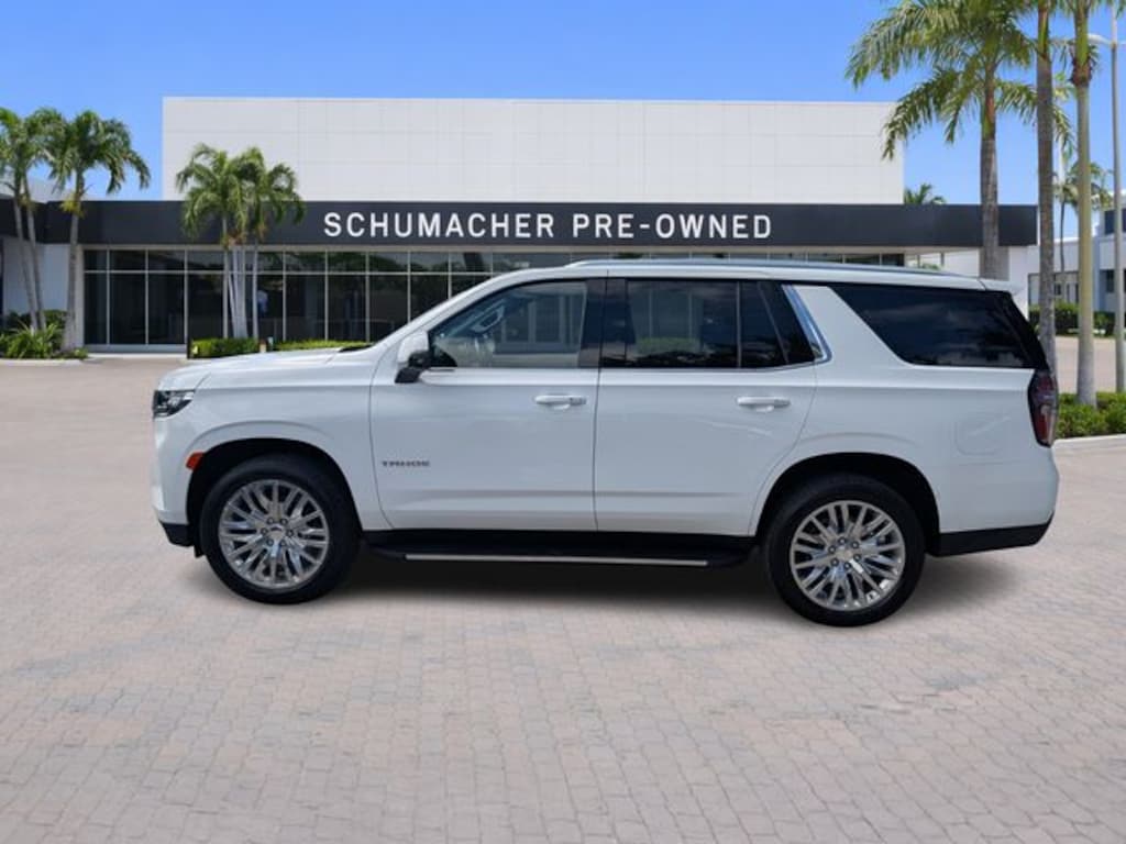 2023 Chevrolet Tahoe LT Summit White CARFAX One-Owner. Clean CARFAX. RWD 10-Speed Automatic with Overdrive EcoTec3 5.3L V8 Tahoe LT, 4D Sport Utility, EcoTec3 5.3L V8, 10-Speed Automatic with Overdrive, RWD, Summit White, Gideon/Very Dark Atmosphere Leather, 10-Way Power Driver & Passenger Seat Adjusters, 1st & 2nd Row Color-Keyed Carpeted Floor Mats, 2nd Row Pwr Release 60/40 Split-Folding Bench Seat, 3.23 Rear Axle Ratio, 3rd Row 60/40 Power-Folding Split-Bench Seat, 3rd row seats: split-bench, 4-Wheel Disc Brakes, 9 Speakers, ABS brakes, Air Conditioning, Alloy wheels, AM/FM radio: SiriusXM with 360L, Apple CarPlay/Android Auto, Auto High-beam Headlights, Auto-Dimming Inside Rear-View Mirror, Auto-dimming Rear-View mirror, Automatic temperature control, Bose 9-Speaker Stereo Audio System Feature, Brake assist, Bright Front & Rear Door Sill Plates, Bumpers: body-color, Color-Keyed Carpeting Floor Covering, Compass, Delay-off headlights, Driver & Front Outboard Passenger Airbags, Driver Alert Package, Driver door bin, Driver vanity mirror, Dual front impact airbags, Dual front side impact airbags, Dual-Pane Power Panoramic Sunroof, Electronic Stability Control, Emergency communication system: OnStar and Chevrolet connected services capable, Enhanced Driver Information Center, Floor Console w/Storage Area, Four wheel independent suspension, Front anti-roll bar, Front Bucket Seats, Front Center Armrest, Front dual zone A/C, Front High-Back Reclining Bucket Seats, Front reading lights, Fully automatic headlights, Garage door transmitter, Hands-Free Rear Power Programmable Liftgate, HD Surround Vision, Heated 2nd Row Outboard Seats, Heated door mirrors, Heated Driver & Front Passenger Seats, Heated front seats, Heated Steering Wheel, Illuminated entry, Infotainment Display, Lane Change Alert w/Side Blind Zone Alert, Leather-Appointed Seat Trim, LED Daytime Running Lamps, Low tire pressure warning, LT Signature Plus Package, Luxury Package, Memory seat, Memory Settings, Memory Settings for Driver, Navigation System, Occupant sensing airbag, Outside Heated Power-Adjustable Mirrors, Outside temperature display, Overhead airbag, Overhead console, Panic alarm, Passenger door bin, Passenger vanity mirror, Power door mirrors, Power driver seat, Power Liftgate, Power passenger seat, Power Release 2nd Row Bucket Seats, Power steering, Power Tilt & Telescopic Steering Column, Power windows, Preferred Equipment Group 1LT, Premium audio system: Chevrolet Infotainment 3 Premium, Premium Smooth Ride Suspension, Radio: Chevrolet Infotainment 3 Premium System, Rain sensing wipers, Rear air conditioning, Rear anti-roll bar, Rear Cross Traffic Alert, Rear Pedestrian Alert, Rear reading lights, Rear seat center armrest, Rear window defroster, Rear window wiper, Remote keyless entry, Remote Start, Roof rack: rails only, Security system, Set of 4 Wheel Locks (LPO), SiriusXM Radio w/360L, Speed control, Speed-sensing steering, Split folding rear seat, Spoiler, Steering wheel mounted audio controls, Tachometer, Telescoping steering wheel, Tilt steering wheel, Traction control, Trip computer, Universal Home Remote, Variably intermittent wipers, Voltmeter, Wheels: 18" x 8.5" Bright Silver Painted Aluminum, Wheels: 22" x 9" Polished Aluminum, Wireless Charging, Wrapped Steering Wheel.