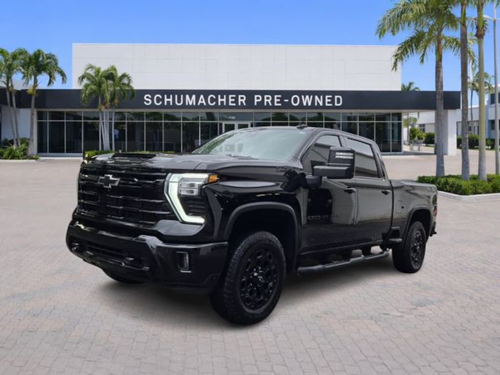 2024 Chevrolet Silverado 2500HD LTZ Black CARFAX One-Owner. Clean CARFAX. 4WD 10-Speed Automatic Duramax 6.6L V8 Turbodiesel Silverado 2500HD LTZ, 4D Crew Cab, Duramax 6.6L V8 Turbodiesel, 10-Speed Automatic, 4WD, Black, Black Leather, 10-Way Power Driver Seat Adjuster w/Lumbar, 10-Way Power Passenger Seat Adjuster w/Lumbar, 120-Volt Bed Mounted Power Outlet, 120-Volt Interior Power Outlet, 170 Amp Alternator, 2 Charge/Data USB Ports Inside Center Console, 220 Amp Alternator, 4-Wheel Disc Brakes, 4" Round Black Assist Steps (LPO), 6 Speakers, 6-Speaker Audio System, 720 Cold-Cranking Amps Heavy-Duty Battery, ABS brakes, Adaptive Cruise Control, Air Conditioning, Alloy wheels, AM/FM radio: SiriusXM with 360L, Apple CarPlay/Android Auto, Auto High-beam Headlights, Auto-dimming door mirrors, Auto-Dimming Inside Rear-View Mirror, Auto-dimming Rear-View mirror, Automatic temperature control, Bed View Camera w/2 Trailer Camera Provisions, Black Beltline Moldings, Black Chevytec Spray-On Bedliner, Bluetooth® For Phone, Body-Color Front Bumper, Body-Color Rear Bumper, BOSE Premium 7-Speaker Sound System, Brake assist, Bumpers: chrome, Chevrolet Connected Access Capable, Chrome Door Handles, Chrome Mirror Caps, Color-Keyed Carpeting Floor Covering, Compass, Deep-Tinted Glass, Delay-off headlights, Driver door bin, Driver Memory, Driver vanity mirror, Dual front impact airbags, Dual front side impact airbags, Durabed Pickup Bed, Electric Rear-Window Defogger, Electronic Cruise Control w/Set & Resume Speed, Electronic Stability Control, Engine Block Heater, Exhaust Brake, EZ Lift Power Lock & Release Tailgate, Floor-Mounted Center Console, Front 40/20/40 Split-Bench Seats w/Lockable Storage, Front anti-roll bar, Front Bucket Seats, Front Center Armrest w/Storage, Front dual zone A/C, Front fog lights, Front LED Fog Lamps, Front Rain-Sensing Wipers, Front reading lights, Front Rubberized Vinyl Floor Mats, Front wheel independent suspension, Fully automatic headlights, Gloss Black Front Bumper, Gloss Black Rear Bumper, Gooseneck/5th Wheel Package (DISC), Gooseneck/5th Wheel Prep Package, HD Rear Vision Camera, HD Surround Vision, Heated 2nd Row Outboard Seats, Heated door mirrors, Heated Driver & Front Outboard Passenger Seating, Heated front seats, Heated Steering Wheel, Heated steering wheel, High Gloss Black Door Handles, High Gloss Black Mirror Caps, Hill Descent Control, Hitch Guidance w/Hitch View, Illuminated entry, In-Vehicle Trailering App System, Keyless Open & Start, LED Cargo Area Lighting, Low tire pressure warning, LTZ Convenience Package, LTZ Convenience Package II, LTZ Plus Package, Manual Tilt & Telescoping Steering Column, Memory seat, Midnight Edition, Occupant sensing airbag, Off-Road Suspension, OnStar & Chevrolet Connected Services Capable, Outside temperature display, Overhead airbag, Overhead console, Panic alarm, Passenger door bin, Passenger vanity mirror, Perf Leather-Appointed Front Outboard Seat Trim, Power Door Locks, Power door mirrors, Power driver seat, Power Front Windows w/Driver Express Up/Down, Power Front Windows w/Passenger Express Up/Down, Power passenger seat, Power Rear Windows w/Express Down, Power Sliding Rear Window w/Defogger, Power steering, Power windows, Preferred Equipment Group 1LZ, Premium audio system: Chevrolet Infotainment 3 Premium, Push Button Start, Pwr Up/Down Tailgate Function w/Pwr Lock & Release, Radio: Chevrolet Infotainment 3 Premium System, Rain sensing wipers, Rear Cross Traffic Alert, Rear reading lights, Rear Rubberized Vinyl Floor Mats, Rear seat center armrest, Rear step bumper, Rear Wheelhouse Liners, Rear window defroster, Remote keyless entry, Remote Vehicle Starter System, Safety Alert Seat, Safety Package, Security system, SiriusXM w/360L, Speed control, Speed-sensing steering, Split folding rear seat, Standard Tailgate, Steering Wheel Audio Controls, Steering wheel mounted audio controls, Suspension Package, Tachometer, Telescoping steering wheel, Tilt steering wh