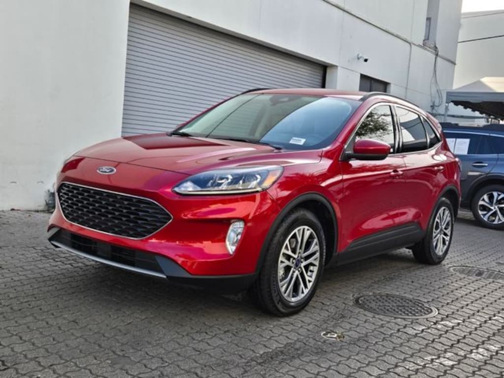 Red Metallic 2022 Ford Escape SEL 1.5L EcoBoost 8-Speed Automatic FWD Escape SEL, 4D Sport Utility, 1.5L EcoBoost, 8-Speed Automatic, FWD, Red Metallic, Sandstone Premium Synthetic, 10-Way Power Driver's Seat, 18-inch Alloy Wheels, 18" Machined-Face Aluminum Wheels, 3.81 Axle Ratio, 4-Wheel Disc Brakes, 4G LTE Wi-Fi Hotspot Removal, 6 Speakers, ABS brakes, Air Conditioning, AM/FM radio: SiriusXM, AM/FM Stereo, Auto High-beam Headlights, Automatic temperature control, Black Roof Rack Rails, Brake assist, Bumpers: body-color, Compass, Delay-off headlights, Driver door bin, Driver vanity mirror, Dual front impact airbags, Dual front side impact airbags, Electronic Stability Control, Emergency communication system: SYNC 3 911 Assist, Equipment Group 301A, Exterior Parking Camera Rear, FordPass Connect, Four wheel independent suspension, Front anti-roll bar, Front Bucket Seats, Front Center Armrest, Front dual zone A/C, Front fog lights, Front reading lights, Fully automatic headlights, Hands-Free Foot-Activated Liftgate, Hands-Free Foot-Activated Liftgate Feature Removal, Heated ActiveX Trimmed Front Sport Contour Bucket Seats, Heated door mirrors, Heated front seats, Heated steering wheel, Illuminated entry, Instrument Panel w/6.5" Digital Screen, Knee airbag, Low tire pressure warning, Memory Package, Occupant sensing airbag, Outside temperature display, Overhead airbag, Overhead console, Panic alarm, Passenger door bin, Passenger vanity mirror, Power door mirrors, Power driver seat, Power Liftgate, Power steering, Power windows, Radio data system, Radio: B&O Sound System by Bang & Olufsen, Rear anti-roll bar, Rear reading lights, Rear seat center armrest, Rear window defroster, Rear window wiper, Remote keyless entry, Speed control, Speed-sensing steering, Speed-Sensitive Wipers, Split folding rear seat, Spoiler, Steering wheel mounted audio controls, SYNC 3 Communications & Entertainment System, Tachometer, Technology Package, Telescoping steering wheel, Tilt steering wheel, Traction control, Trip computer, Variably intermittent wipers, Wireless Charging Pad.