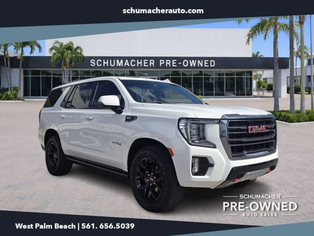 2022 GMC Yukon AT4 Summit White CARFAX One-Owner. 4WD 10-Speed Automatic with Overdrive EcoTec3 6.2L V8 Yukon AT4, 4D Sport Utility, EcoTec3 6.2L V8, 10-Speed Automatic with Overdrive, 4WD, Summit White, Jet Black Leather, 2 Presets For Outside Rearview Mirrors, 3 Years of GMC Connected Services, 3.23 Rear Axle Ratio, 3rd Row 60/40 Power-Folding Split-Bench Seat, 3rd row seats: split-bench, 4-Wheel Disc Brakes, 9 Speakers, ABS brakes, Adaptive suspension, Air Conditioning, Alloy wheels, AM/FM radio: SiriusXM with 360L, AM/FM Stereo, Apple CarPlay/Android Auto, Auto High-beam Headlights, Auto-dimming door mirrors, Auto-dimming Rear-View mirror, Auto-leveling suspension, Automatic Emergency Braking, Automatic Stop/Start, Automatic temperature control, Black Nameplates (LPO), Black Roof-Mounted Luggage Rack Side Rails, Bose 9-Speaker Stereo Audio System Feature, Brake assist, Bright Front & Rear Door Sill Plates, Bumpers: body-color, Cat-Back Performance Exhaust (LPO), Compass, Delay-off headlights, Driver door bin, Driver vanity mirror, Dual Exhaust System, Dual front impact airbags, Dual front side impact airbags, Electronic Stability Control, Emergency communication system: OnStar and GMC Connected Services capable, Following Distance Indicator, Forward Collision Alert, Four wheel independent suspension, Front & Rear Park Assist, Front anti-roll bar, Front Bucket Seats, Front Center Armrest, Front dual zone A/C, Front fog lights, Front High-Approach Angle Fascia, Front Pedestrian Braking, Front reading lights, Fully automatic headlights, Garage door transmitter, Hands-Free Power Programmable Rear Liftgate, Heated & Ventilated Driver & Front Passenger Seats, Heated 2nd Row Outboard Position Seats, Heated door mirrors, Heated Driver & Front Passenger Seats, Heated front seats, Heated rear seats, Heated Steering Wheel, Heated steering wheel, Heavy-Duty Air Filter, Hill Descent Control, Illuminated entry, Inside Rear-View Auto-Dimming Mirror, IntelliBeam Automatic High Beam On/Off, Lane Change Alert w/Side Blind Zone Alert, Lane Keep Assist w/Lane Departure Warning, Leather steering wheel, Low tire pressure warning, Magnetic Ride Control Suspension, Memory seat, Navigation System, Not Equipped w/4-Way Driver & Fr Pass Pwr Lumbar, Not Equipped w/Front & Rear Park Assist, Not Equipped w/Heated Steering Wheel (DISC), Not Equipped w/Steering Column Lock, Occupant sensing airbag, Outside Heated Power-Adjustable Mirrors, Outside temperature display, Overhead airbag, Overhead console, Panic alarm, Passenger door bin, Passenger vanity mirror, Perforated Leather Seating Surfaces, Power door mirrors, Power driver seat, Power Liftgate, Power passenger seat, Power Release 2nd Row 60/40 Split-Folding Bench Seat, Power steering, Power Tilt & Telescopic Steering Column, Power windows, Power-Retractable Assist Steps, Preferred Equipment Group 4SB, Rain sensing wipers, Rear air conditioning, Rear anti-roll bar, Rear Cross Traffic Alert, Rear reading lights, Rear seat center armrest, Rear window defroster, Rear window wiper, Red Horizontal-Mounted Recovery Hooks, Remote keyless entry, Roof rack: rails only, Safety Alert Seat, Security system, SiriusXM w/360L, Speed control, Speed-sensing steering, Split folding rear seat, Spoiler, Sport Pedal Cover Kit (LPO), Start/Stop System Disable Button, Steering wheel memory, Steering wheel mounted audio controls, Tachometer, Telescoping steering wheel, Tilt steering wheel, Traction control, Trip computer, Turn signal indicator mirrors, Universal Home Remote, Variably intermittent wipers, Ventilated front seats, Voltmeter, Wheels: 20 Multi-Spoke Gloss Black (LPO), Wheels: 20 x 9 6-Spoke Machined Aluminum, Wireless Charging.