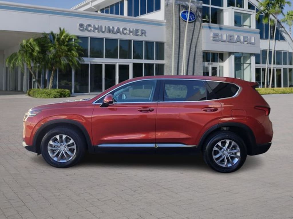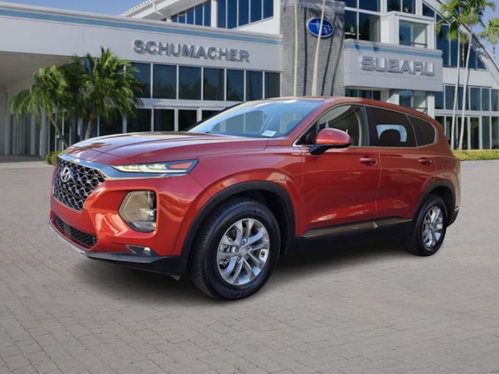 Lava Orange 2019 Hyundai Santa Fe SEL 2.4L I4 DGI DOHC 16V LEV3-ULEV70 185hp 8-Speed Automatic with SHIFTRONIC FWD Santa Fe SEL, 4D Sport Utility, 2.4L I4 DGI DOHC 16V LEV3-ULEV70 185hp, 8-Speed Automatic with SHIFTRONIC, FWD, Lava Orange, Black Cloth, 17" x 7.0J Alloy Wheels, 18-inch Alloy Wheels, 4-Wheel Disc Brakes, 6 Speakers, ABS brakes, Air Conditioning, AM/FM radio: SiriusXM, Apple CarPlay & Android Auto, Auto High-beam Headlights, Axle Ratio 3.798, Brake assist, Bumpers: body-color, Carpeted Floor Mats, Delay-off headlights, Driver door bin, Driver vanity mirror, Dual front impact airbags, Dual front side impact airbags, Electronic Stability Control, Emergency communication system: Blue Link, Exterior Parking Camera Rear, Four wheel independent suspension, Front anti-roll bar, Front Bucket Seats, Front Center Armrest, Front fog lights, Front reading lights, Fully automatic headlights, Heated door mirrors, Heated Front Bucket Seats, Heated front seats, Illuminated entry, Low tire pressure warning, Occupant sensing airbag, Option Group 01, Outside temperature display, Overhead airbag, Overhead console, Panic alarm, Passenger door bin, Passenger vanity mirror, Power door mirrors, Power driver seat, Power steering, Power windows, Radio: AM/FM/MP3 Display Audio, Rear anti-roll bar, Rear seat center armrest, Rear window defroster, Rear window wiper, Remote keyless entry, Security system, Speed control, Speed-sensing steering, Split folding rear seat, Spoiler, Stain-Resistant Cloth Seating Surfaces, Steering wheel mounted audio controls, Tachometer, Telescoping steering wheel, Tilt steering wheel, Traction control, Trip computer, Variably intermittent wipers.