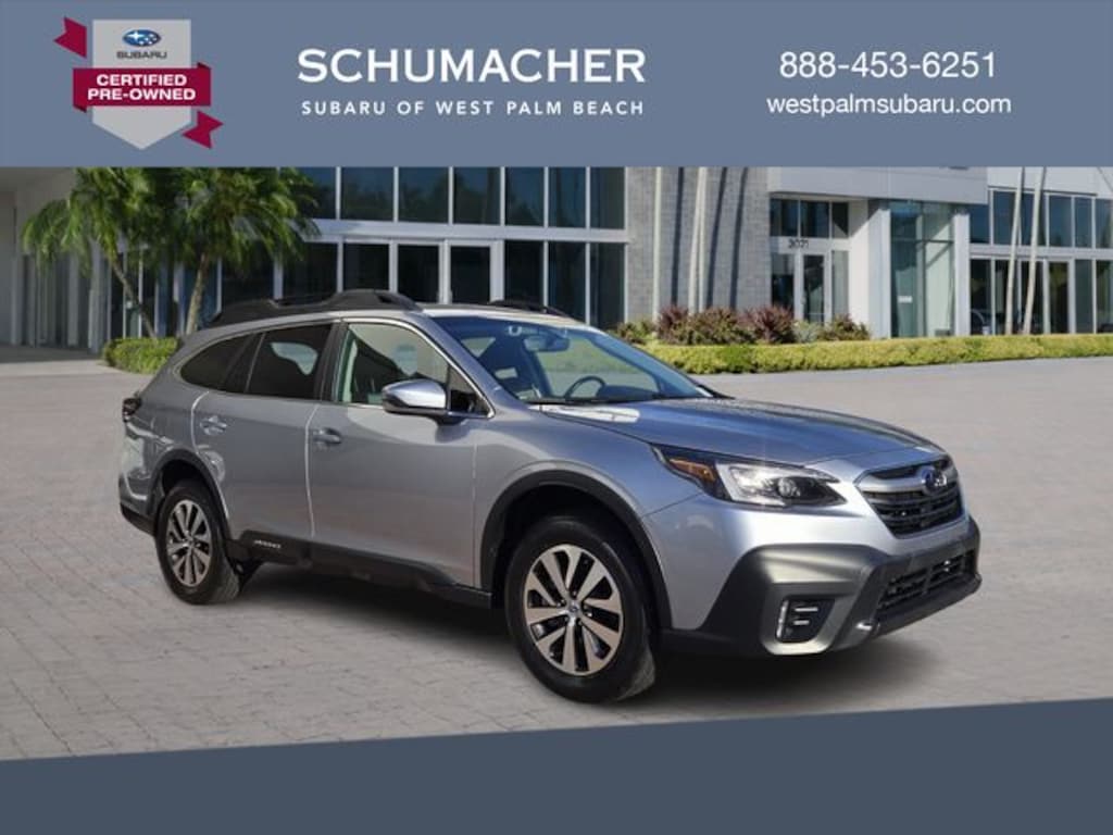 Ice Silver Metallic 2021 Subaru Outback Premium 2.5L 4-Cylinder DOHC 16V CVT Lineartronic AWD 152 Point Certified Pre-Owned Inspection, ABS brakes, Auto High-beam Headlights, Auto-Dimming Mirror w/Compass & HomeLink, Automatic temperature control, Blind Spot Detection (BSD), Brake assist, BSD w/RCTA & Keyless Access & Push Button Start, Exterior Parking Camera Rear, Front dual zone A/C, Fully automatic headlights, Hands-Free Power Rear Gate, Heated Front Bucket Seats, Keyless Access w/Push Button Start, Power driver seat, Radio: Subaru STARLINK 11.6" Multimedia Plus Sys, Rear Cross Traffic Alert (RCTA), Remote keyless entry, STARLINK/Apple CarPlay/Android Auto, Telescoping steering wheel, Tilt steering wheel, Wireless Charger.