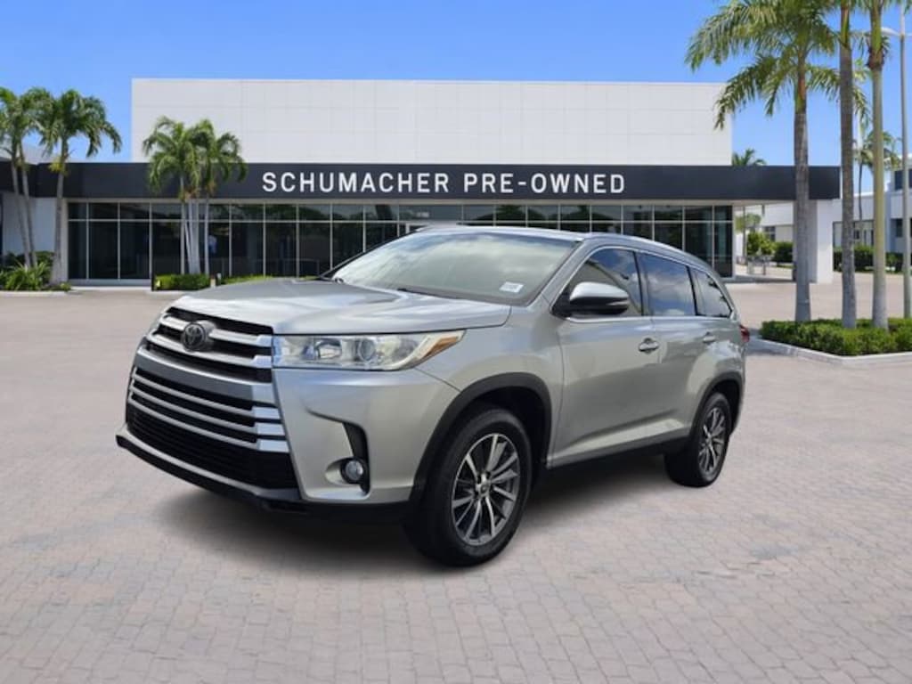 2019 Toyota Highlander XLE Celestial Silver Metallic CARFAX One-Owner. Clean CARFAX. FWD 8-Speed Automatic Electronic with ECT-i 3.5L V6 4D Sport Utility, 3.5L V6, 8-Speed Automatic Electronic with ECT-i, FWD, Celestial Silver Metallic, Black Leather, 3.003 Axle Ratio, 3rd row seats: split-bench, 4-Wheel Disc Brakes, ABS brakes, Air Conditioning, Alloy wheels, Auto High-beam Headlights, Brake assist, Bumpers: body-color, CD player, Delay-off headlights, Driver door bin, Driver vanity mirror, Dual front impact airbags, Dual front side impact airbags, Electronic Stability Control, Exterior Parking Camera Rear, Four wheel independent suspension, Front anti-roll bar, Front Bucket Seats, Front Center Armrest, Front reading lights, Fully automatic headlights, Heated door mirrors, Illuminated entry, Knee airbag, Low tire pressure warning, Occupant sensing airbag, Outside temperature display, Overhead airbag, Overhead console, Panic alarm, Passenger door bin, Passenger vanity mirror, Power door mirrors, Power steering, Power windows, Rear air conditioning, Rear anti-roll bar, Rear reading lights, Rear window defroster, Rear window wiper, Reclining 3rd row seat, Remote keyless entry, Speed control, Speed-sensing steering, Split folding rear seat, Spoiler, Steering wheel mounted audio controls, Tachometer, Telescoping steering wheel, Tilt steering wheel, Traction control, Trip computer, Turn signal indicator mirrors, Variably intermittent wipers.21/27 City/Highway MPGAwards:* 2019 KBB.com 12 Best Family Cars * 2019 KBB.com Best Resale Value Awards * 2019 KBB.com Brand Image AwardsVehicle must be financed in house or price will be adjusted by $1000.00. Pricing does not include Certification Fees. See store for details.