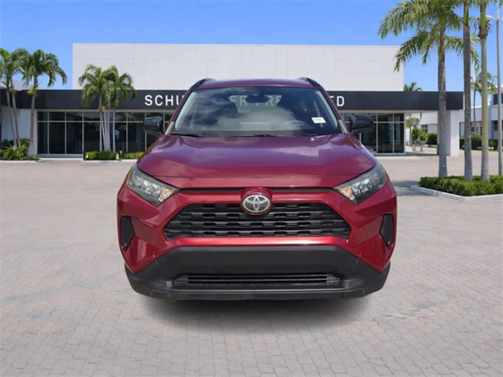 2019 Toyota RAV4 LE Maroon Clean CARFAX. FWD 8-Speed Automatic 2.5L 4-Cylinder DOHC Dual VVT-i RAV4 LE, 4D Sport Utility, 2.5L 4-Cylinder DOHC Dual VVT-i, 8-Speed Automatic, FWD, Maroon, Black Cloth, 17 Wheels, 4-Wheel Disc Brakes, 6 Speakers, ABS brakes, Air Conditioning, AM/FM radio, Apple CarPlay, Auto High-beam Headlights, Axle Ratio: 3.177, Brake assist, Bumpers: body-color, Driver door bin, Driver vanity mirror, Dual front impact airbags, Dual front side impact airbags, Electronic Stability Control, Emergency communication system: Entune Safety Connect, Exterior Parking Camera Rear, Fabric Seat Trim, Four wheel independent suspension, Front anti-roll bar, Front Bucket Seats, Front Center Armrest, Front reading lights, Illuminated entry, Knee airbag, Low tire pressure warning, Occupant sensing airbag, Outside temperature display, Overhead airbag, Overhead console, Panic alarm, Passenger door bin, Passenger vanity mirror, Power door mirrors, Power steering, Power windows, Radio data system, Radio: Entune 3.0 Audio, Rear anti-roll bar, Rear seat center armrest, Rear window defroster, Rear window wiper, Remote keyless entry, Roof rack: rails only, Speed control, Speed-sensing steering, Split folding rear seat, Spoiler, Steering wheel mounted audio controls, Tachometer, Telescoping steering wheel, Tilt steering wheel, Traction control, Trip computer.26/35 City/Highway MPGAwards:* 2019 KBB.com 10 Favorite New-for-2019 Cars * 2019 KBB.com 10 Best SUVs Under $30,000 * 2019 KBB.com Best Resale Value Awards * 2019 KBB.com Brand Image AwardsCome Join the Family!! Must finance with dealership or $1000 price adjustment excludes cert fees.
