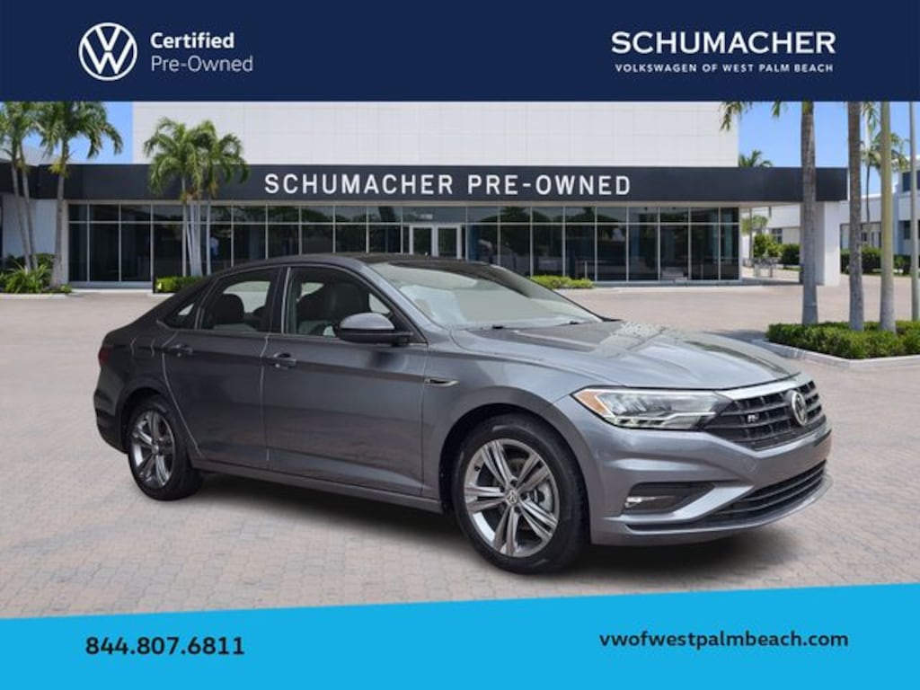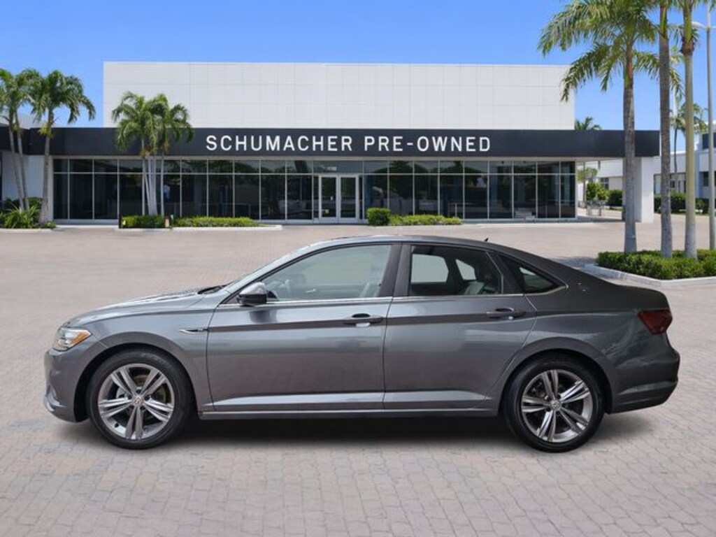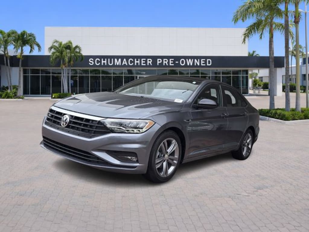 2021 Volkswagen Jetta R-Line Platinum Gray Metallic CARFAX One-Owner. Certified. FWD 8-Speed Automatic 1.4L TSI Jetta R-Line, 4D Sedan, 1.4L TSI, 8-Speed Automatic, FWD, Platinum Gray Metallic, Storm Gray/Black Artificial Leather, 17" Twin 5-Spoke Alloy Wheels, 4 Speakers, 4-Wheel Disc Brakes, ABS brakes, Air Conditioning, Alloy wheels, AM/FM radio, Automatic temperature control, Brake assist, Bumperdillo Protection Plate for Rear Bumper, Bumpers: body-color, Delay-off headlights, Driver door bin, Driver vanity mirror, Dual front impact airbags, Dual front side impact airbags, Electronic Stability Control, Emergency communication system: VW Car-Net services (capabilities require enrollment or subscription), Exterior Parking Camera Rear, Front anti-roll bar, Front Bucket Seats, Front Center Armrest, Front dual zone A/C, Front fog lights, Front reading lights, Front wheel independent suspension, Fully automatic headlights, Heated door mirrors, Heated Front Comfort Seats, Heated front seats, Heated Front Washer Nozzles, Heated Front Wiper Area on Lower Windshield, Heated R-Line Steering Wheel, Heated Rear Outboard Seating Positions, Heavy Duty Trunk Liner w/VW CarGo Blocks, Illuminated entry, Leather Shift Knob, Low tire pressure warning, Monster Mats w/Logo Rubber Mats Kit (Set of 4), Occupant sensing airbag, Outside temperature display, Overhead airbag, Overhead console, Panic alarm, Passenger door bin, Passenger vanity mirror, Perforated V-Tex Leatherette Seat Trim, Power door mirrors, Power moonroof: Panoramic, Power steering, Power windows, R-Line Cold Weather Package, Radio data system, Radio: Composition Color w/6.5" Touchscreen, Rear anti-roll bar, Rear reading lights, Rear seat center armrest, Rear window defroster, Remote Engine Start w/Remote Key Fob, Remote keyless entry, Roadside Assistance Kit, Speed control, Speed-sensing steering, Split folding rear seat, Steering wheel mounted audio controls, Tachometer, Telescoping steering wheel, Tilt steering wheel, Traction control, Trip computer, Variably intermittent wipers, Washer Fluid Warning Indicator.