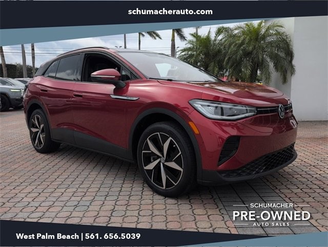 2023 Volkswagen ID.4 Pro S Red CARFAX One-Owner. Clean CARFAX. AWD Single-Speed Automatic Electric Motor Exterior Parking Camera Rear, Heated Front Seats, Navigation System, Perforated V-Tex Leatherette Seating Surfaces, Power Liftgate, Radio: Discover Pro Max w/12 Touchscreen Nav, Remote keyless entry, Wheels: 20 5-Spoke 2-Tone Machined Alloy.