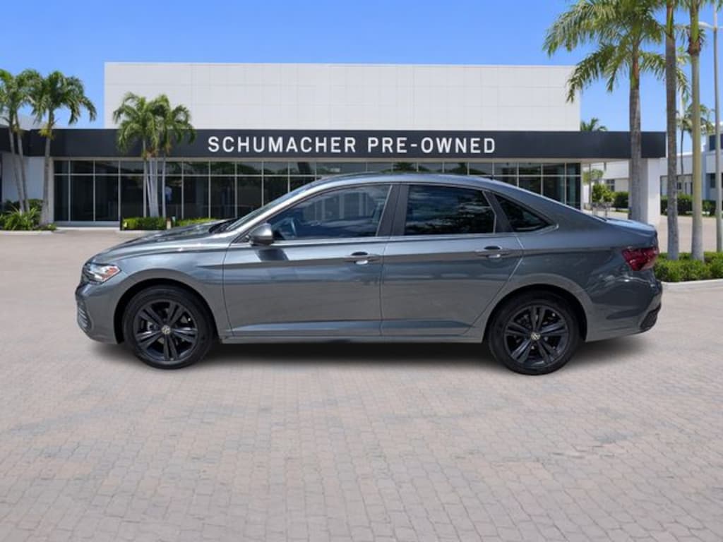 2023 Volkswagen Jetta 1.5T SE Platinum Gray Metallic CARFAX One-Owner. FWD 8-Speed Automatic with Tiptronic 1.5L I-4 DI DOHC Turbocharged **VW CERTIFIED**, Jetta 1.5T SE, 4D Sedan, 1.5L I-4 DI DOHC Turbocharged, 8-Speed Automatic with Tiptronic, FWD, Platinum Gray Metallic, Titan Black Premium Synthetic, 4 Speakers, 4-Wheel Disc Brakes, ABS brakes, Active Blind Spot Monitor, Air Conditioning, Alloy wheels, AM/FM radio, Auto-dimming Rear-View mirror, Auto-Dimming Rearview Mirror w/Electronic Compass, Automatic temperature control, Black Wheel Package, Brake assist, Bumpers: body-color, Credit - Rear Sensors Removed, Delay-off headlights, Driver door bin, Driver vanity mirror, Dual front impact airbags, Dual Front Reading Lights, Dual front side impact airbags, Electronic Stability Control, Emergency communication system: VW Car-Net Safe & Secure 5-year, Exterior Parking Camera Rear, First Aid Kit, Front anti-roll bar, Front Bucket Seats, Front Center Armrest, Front dual zone A/C, Front wheel independent suspension, Fully automatic headlights, Heated door mirrors, Heated Front Comfort Sport Seats, Heated front seats, Heavy Duty Trunk Liner w/VW CarGo Blocks, Illuminated entry, Illuminated Vanity Mirrors, Leather Shift Knob, Low tire pressure warning, Occupant sensing airbag, Outside temperature display, Overhead airbag, Overhead console, Overhead Storage Compartment, Panic alarm, Panoramic Sunroof Package, Passenger door bin, Passenger vanity mirror, Power door mirrors, Power driver seat, Power steering, Power Tilting & Sliding Panoramic Sunroof, Power windows, Radio data system, Radio: MIB3 Composition Color w/6.5" Touchscreen, Rain sensing wipers, Rear anti-roll bar, Rear reading lights, Rear seat center armrest, Rear window defroster, Remote keyless entry, Roadside Assistance Kit, Rubber Monster Mats Kit (Set of 4), Speed control, Speed-sensing steering, Split folding rear seat, Steering wheel mounted audio controls, Tachometer, Telescoping steering wheel, Tilt steering wheel, Traction control, Trip computer, V-Tex Leatherette Seat Trim, Variably intermittent wipers, Wheels: 17" Twin 5-Spoke Dark Graphite Painted Alloy, Wheels: 17" Twin 5-Spoke Silver Painted Alloy.