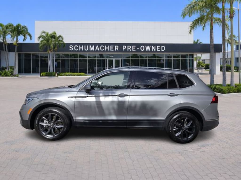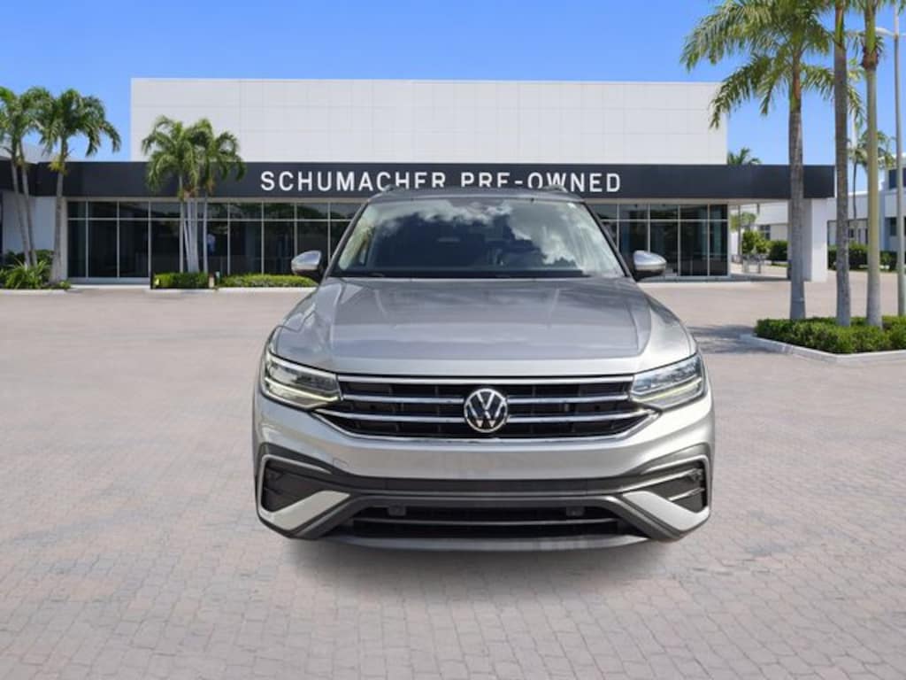 2023 Volkswagen Tiguan 2.0T SE Pyrite Silver Metallic CARFAX One-Owner. Clean CARFAX. Certified. FWD 8-Speed Automatic with Tiptronic 2.0L TSI DOHC Tiguan 2.0T SE, 4D Sport Utility, 2.0L TSI DOHC, 8-Speed Automatic with Tiptronic, FWD, Pyrite Silver Metallic, 3.33 Axle Ratio, 3rd row seats: bench, 4-Wheel Disc Brakes, 4-Wheel Independent Suspension, 6 Speakers, ABS brakes, Air Conditioning, Alloy wheels, AM/FM radio: SiriusXM with 360L, Auto-dimming Rear-View mirror, Automatic temperature control, Brake assist, Bumpers: body-color, Compass, Delay-off headlights, Driver door bin, Driver vanity mirror, Dual front impact airbags, Dual front side impact airbags, Electronic Stability Control, Emergency communication system: VW Car-Net Safe & Secure 5-year, Exterior Parking Camera Rear, Four wheel independent suspension, Front anti-roll bar, Front Bucket Seats, Front Center Armrest, Front dual zone A/C, Front reading lights, Fully automatic headlights, Heated door mirrors, Heated Front Comfort Seats, Heated front seats, Illuminated entry, Leather Shift Knob, Low tire pressure warning, Occupant sensing airbag, Outside temperature display, Overhead airbag, Overhead console, Panic alarm, Passenger door bin, Passenger vanity mirror, Perforated V-Tex Leatherette Seating Surfaces, Power door mirrors, Power driver seat, Power Liftgate, Power steering, Power windows, Radio data system, Radio: MIB3 Composition Media AM/FM/HD, Rain sensing wipers, Rear anti-roll bar, Rear reading lights, Rear seat center armrest, Rear window defroster, Rear window wiper, Remote keyless entry, Security system, Speed control, Speed-sensing steering, Split folding rear seat, Spoiler, Steering wheel mounted audio controls, Tachometer, Telescoping steering wheel, Tilt steering wheel, Traction control, Trip computer, Turn signal indicator mirrors, Variably intermittent wipers, Wheels: 18" Dark Graphite Painted 10-Spoke Alloy.