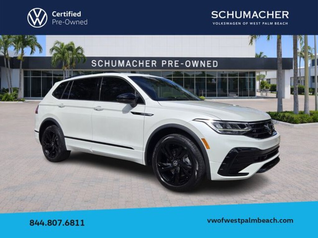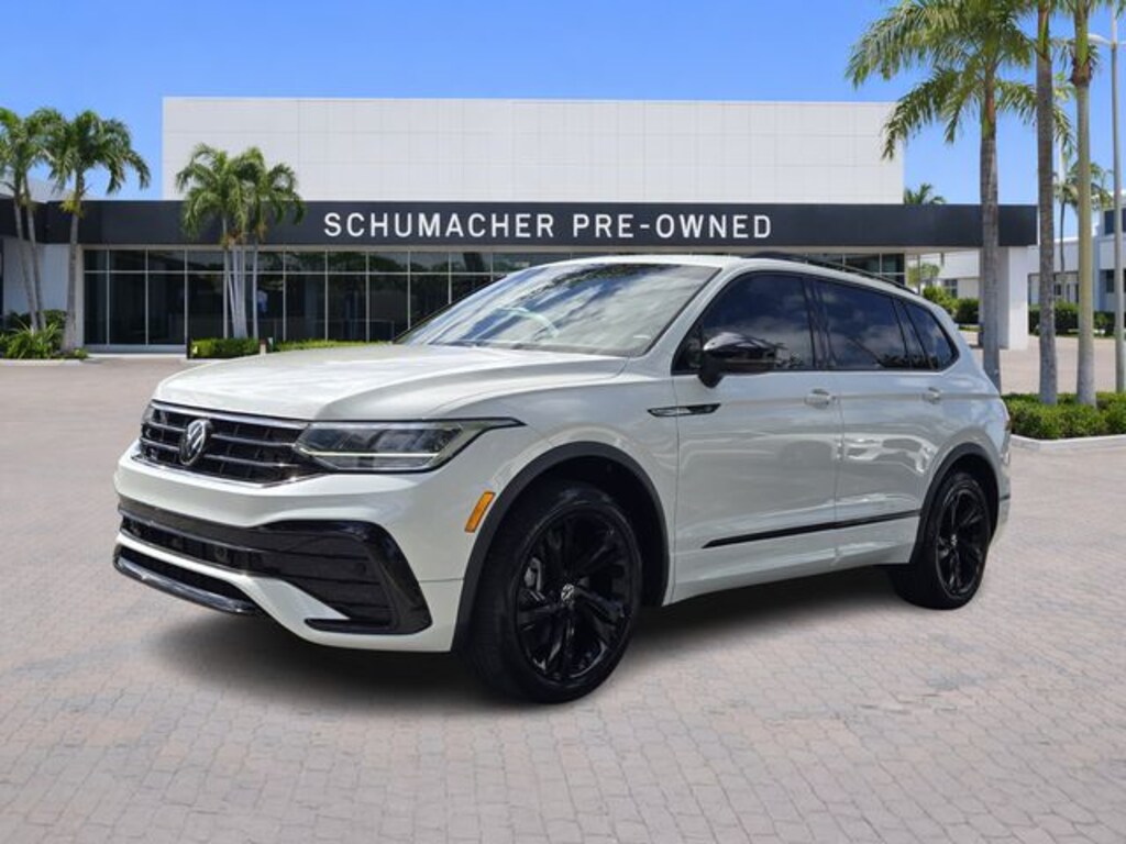 2023 Volkswagen Tiguan 2.0T SE R-Line Black Opal White CARFAX One-Owner. Clean CARFAX. Certified. FWD 8-Speed Automatic with Tiptronic 2.0L TSI DOHC **VW CERTIFIED**, Tiguan 2.0T SE R-Line Black, 4D Sport Utility, 2.0L TSI DOHC, 8-Speed Automatic with Tiptronic, FWD, Opal White, Titan Black Premium Synthetic, 3-Row Rubber Monster Mats w/Logo Kit (Set of 5), 3.33 Axle Ratio, 3rd row seats: bench, 4-Wheel Disc Brakes, 4-Wheel Independent Suspension, 6 Speakers, ABS brakes, Air Conditioning, Alloy wheels, AM/FM radio: SiriusXM with 360L, Auto-dimming Rear-View mirror, Auto-Dimming Rearview Mirror w/Compass/HomeLink (DISC), Automatic temperature control, Brake assist, Bumpers: body-color, Cargo Area Retractable Privacy Cover, Compass, Credit - Steering Wheel Substitution, Delay-off headlights, Driver door bin, Driver vanity mirror, Dual front impact airbags, Dual front side impact airbags, Electronic Stability Control, Emergency communication system: VW Car-Net Safe & Secure 5-year, Exterior Parking Camera Rear, First Aid Kit, Four wheel independent suspension, Front anti-roll bar, Front Bucket Seats, Front Center Armrest, Front dual zone A/C, Front reading lights, Fully automatic headlights, Heated door mirrors, Heated Front Comfort Seats, Heated front seats, Heavy Duty Trunk Liner w/VW CarGo Blocks, Illuminated entry, Leather Shift Knob, Leather steering wheel, Low tire pressure warning, Occupant sensing airbag, Outside temperature display, Overhead airbag, Overhead console, Panic alarm, Passenger door bin, Passenger vanity mirror, Perforated V-Tex Leatherette Seating Surfaces, Power door mirrors, Power driver seat, Power Liftgate, Power moonroof, Power steering, Power windows, Radio data system, Radio: MIB3 Composition Media AM/FM/HD, Rain sensing wipers, Rear anti-roll bar, Rear reading lights, Rear seat center armrest, Rear window defroster, Rear window wiper, Remote keyless entry, Roadside Assistance Kit, Roof Rack Base Carrier Bars (Set of 2), Security system, Speed control, Speed-sensing steering, Split folding rear seat, Spoiler, Sport steering wheel, Steering wheel mounted audio controls, Tachometer, Telescoping steering wheel, Tilt steering wheel, Traction control, Trip computer, Turn signal indicator mirrors, Variably intermittent wipers, Wheels: 19" Black Painted Twin 5-Spoke Alloy.