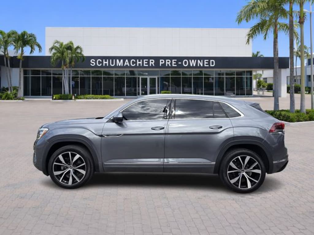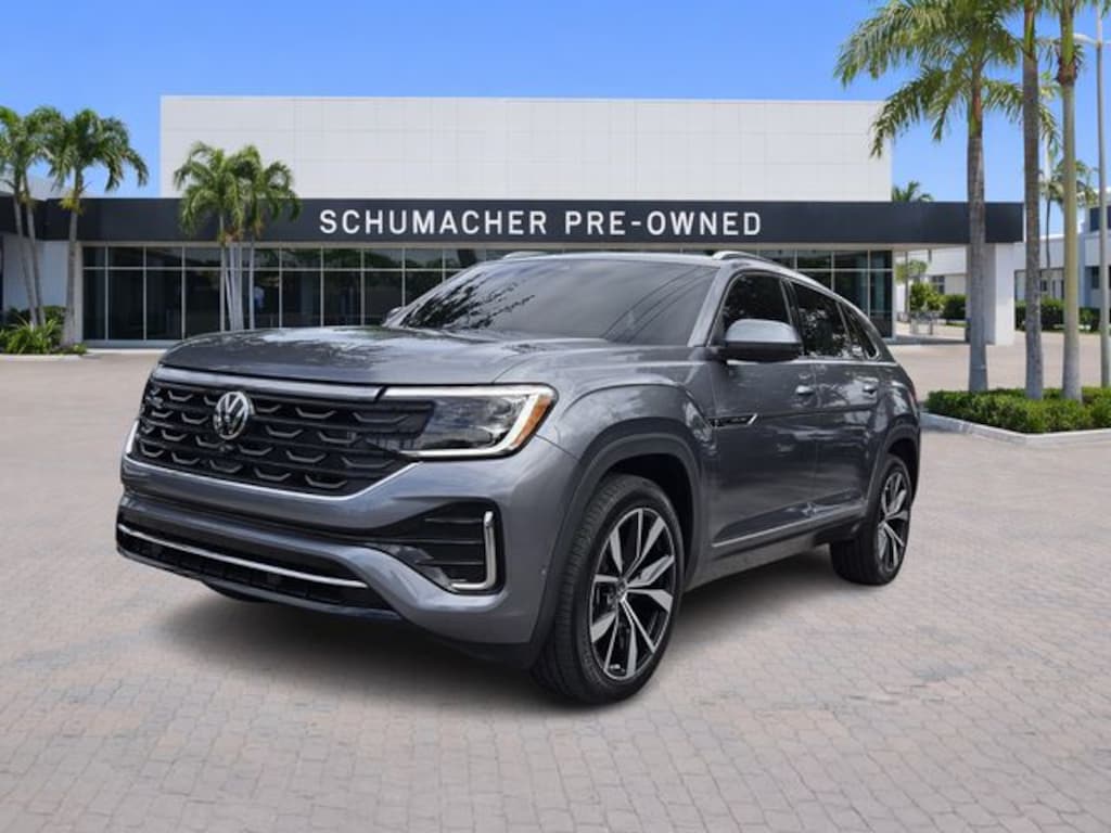 2024 Volkswagen Atlas Cross Sport 2.0T SEL Premium R-Line Platinum Gray Metallic CARFAX One-Owner. Clean CARFAX. Certified. AWD 8-Speed Automatic with Tiptronic 2.0L TSI Atlas Cross Sport 2.0T SEL Premium R-Line, 4D Sport Utility, 2.0L TSI, 8-Speed Automatic with Tiptronic, AWD, Platinum Gray Metallic, Blue Leather, 3.60 Axle Ratio, 4-Wheel Disc Brakes, 4-Wheel Independent Suspension, 6 Speakers, ABS brakes, Air Conditioning, Alloy wheels, AM/FM radio: SiriusXM with 360L, Auto High-beam Headlights, Auto-Dimming Rear-View Mirror, Auto-dimming Rear-View mirror, Automatic temperature control, Base Carrier Bars Roof Rack (Set of 2), Brake assist, Bumpers: body-color, Compass, Delay-off headlights, Driver door bin, Driver vanity mirror, Dual front impact airbags, Dual front side impact airbags, Electronic Stability Control, Emergency communication system: VW Car-Net Safe & Secure 5-year, Exterior Parking Camera Rear, First Aid Kit, Four wheel independent suspension, Front anti-roll bar, Front Bucket Seats, Front Center Armrest, Front dual zone A/C, Front fog lights, Front reading lights, Fully automatic headlights, harman/kardon® Speakers, Heads-Up Display, Heated & Actively Ventilated Front Seats, Heated door mirrors, Heated front seats, Heated rear seats, Heated steering wheel, Heavy Duty Trunk Liner w/VW CarGo Blocks, Illuminated entry, Leather steering wheel, Low tire pressure warning, Media Cable, Memory seat, Monster Mats Rubber Mats (Set of 4), Navigation System, Occupant sensing airbag, Outside temperature display, Overhead airbag, Overhead console, Panic alarm, Passenger door bin, Passenger vanity mirror, Perforated Vienna Leather Seating Surfaces, Power door mirrors, Power driver seat, Power Liftgate, Power moonroof: Panoramic, Power passenger seat, Power steering, Power windows, Privacy Cover, Radio data system, Radio: MIB3 Discover Media Navigation AM/FM/HD, Rain sensing wipers, Rear anti-roll bar, Rear audio controls, Rear reading lights, Rear seat center armrest, Rear window defroster, Rear window wiper, Remote keyless entry, Roadside Assistance Kit, Rubber Mats Kit, Security system, Speed control, Speed-sensing steering, Split folding rear seat, Spoiler, Sport steering wheel, Steering wheel mounted audio controls, Tachometer, Telescoping steering wheel, Tilt steering wheel, Traction control, Trip computer, Turn signal indicator mirrors, Variably intermittent wipers, Ventilated front seats, VW Care, Wheels: 21" 2-Tone Machined Alloy.