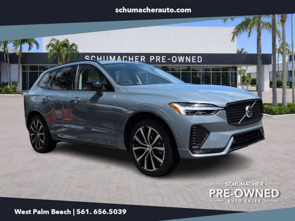 2023 Volvo XC60 B5 Plus Dark Theme Gray Metallic CARFAX One-Owner. Clean CARFAX. AWD Automatic with Geartronic 2.0L I4 Turbocharged XC60 B5 Plus Dark Theme, 4D Sport Utility, 2.0L I4 Turbocharged, Automatic with Geartronic, AWD, Gray Metallic, Blond Leather, 10 Speakers, 4-Wheel Disc Brakes, ABS brakes, Air Conditioning, Alloy wheels, AM/FM radio: SiriusXM, Anti-whiplash front head restraints, Apple CarPlay, Auto High-beam Headlights, Auto-dimming door mirrors, Auto-dimming Rear-View mirror, Automatic temperature control, Brake assist, Bumpers: body-color, Delay-off headlights, Driver door bin, Driver vanity mirror, Dual front impact airbags, Dual front side impact airbags, Electronic Stability Control, Emergency communication system: Volvo Cars App w/4 Year Subscription, Exterior Parking Camera Rear, Four wheel independent suspension, Front anti-roll bar, Front Bucket Seats, Front Center Armrest, Front dual zone A/C, Front fog lights, Front reading lights, Fully automatic headlights, Garage door transmitter: HomeLink, Genuine wood console insert, Genuine wood dashboard insert, Heated door mirrors, Heated Front Bucket Seats, Heated front seats, Illuminated entry, Knee airbag, Leather Shift Knob, Leather Upholstery, Low tire pressure warning, Luggage Cover, Memory seat, Occupant sensing airbag, Outside temperature display, Overhead airbag, Panic alarm, Passenger door bin, Passenger vanity mirror, Power door mirrors, Power driver seat, Power moonroof, Power Operated Tailgate, Power passenger seat, Power steering, Power windows, Radio data system, Radio: harman/kardon Premium Sound, Radio: High Performance Audio System, Rain sensing wipers, Rear anti-roll bar, Rear fog lights, Rear reading lights, Rear seat center armrest, Rear window defroster, Rear window wiper, Remote keyless entry, Security system, Speed control, Split folding rear seat, Spoiler, Steering wheel mounted audio controls, Tachometer, Telescoping steering wheel, Tilt steering wheel, Traction control, Trip computer, Turn signal indicator mirrors, Variably intermittent wipers, Wheels: 19" 5-V Spoke Black Diamond Cut Alloy, Wheels: 20" 5-Y Spoke Black Diamond Cut Alloy.