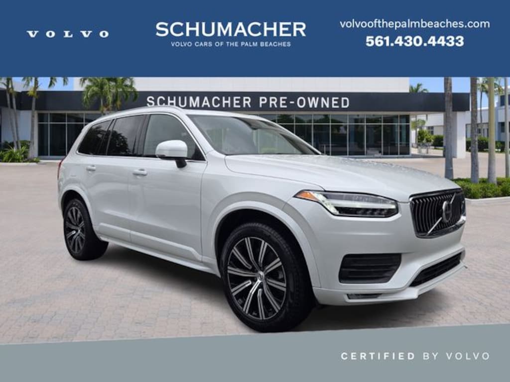 2023 Volvo XC90 B6 Core Crystal White Metallic CARFAX One-Owner. Clean CARFAX. Certified. AWD Automatic with Geartronic 2.0L I4 Turbocharged DOHC 16V LEV3-ULEV70 **ONE OWNER**, XC90 B6 Core, 4D Sport Utility, 2.0L I4 Turbocharged DOHC 16V LEV3-ULEV70, Automatic with Geartronic, AWD, Crystal White Metallic, Maroon w/Leather Upholstery, 10 Speakers, 3rd row seats: bucket, 4-Wheel Disc Brakes, ABS brakes, Air Conditioning, Alloy wheels, AM/FM radio: SiriusXM, Anti-whiplash front head restraints, Apple CarPlay, Auto High-beam Headlights, Auto-dimming door mirrors, Auto-dimming Rear-View mirror, Automatic temperature control, Brake assist, Bumpers: body-color, Delay-off headlights, Driver door bin, Driver vanity mirror, Dual front impact airbags, Dual front side impact airbags, Electronic Stability Control, Emergency communication system: Volvo Cars App w/4 Year Subscription, Exterior Parking Camera Rear, Four wheel independent suspension, Front anti-roll bar, Front Bucket Seats, Front Center Armrest w/Storage, Front dual zone A/C, Front fog lights, Front reading lights, Fully automatic headlights, Garage door transmitter: HomeLink, Genuine wood dashboard insert, Genuine wood door panel insert, Heated door mirrors, Heated Front Bucket Seats, Heated front seats, Illuminated entry, Knee airbag, Leather Shift Knob, Leather Upholstery, Low tire pressure warning, Memory seat, Navigation System, Occupant sensing airbag, Outside temperature display, Overhead airbag, Panic alarm, Passenger door bin, Passenger vanity mirror, Power door mirrors, Power driver seat, Power moonroof, Power passenger seat, Power steering, Power windows, Radio data system, Radio: High Performance Audio System, Rain sensing wipers, Rear air conditioning, Rear anti-roll bar, Rear dual zone A/C, Rear fog lights, Rear reading lights, Rear seat center armrest, Rear window defroster, Rear window wiper, Remote keyless entry, Security system, Speed control, Speed-sensing steering, Split folding rear seat, Spoiler, Steering wheel mounted audio controls, Tachometer, Telescoping steering wheel, Traction control, Trip computer, Turn signal indicator mirrors, Variably intermittent wipers, Wheels: 19" 6-Spoke Turbine Sparkling Silver Alloy, Wheels: 20" 10-Spoke Black Diamond Cut Alloy.