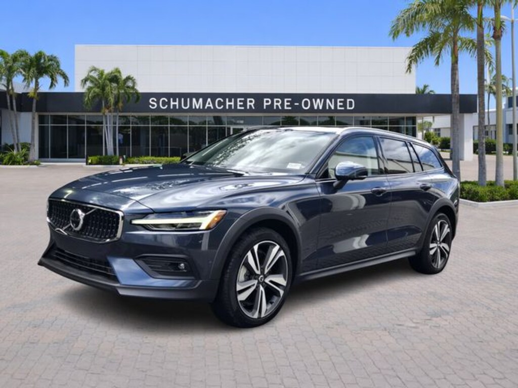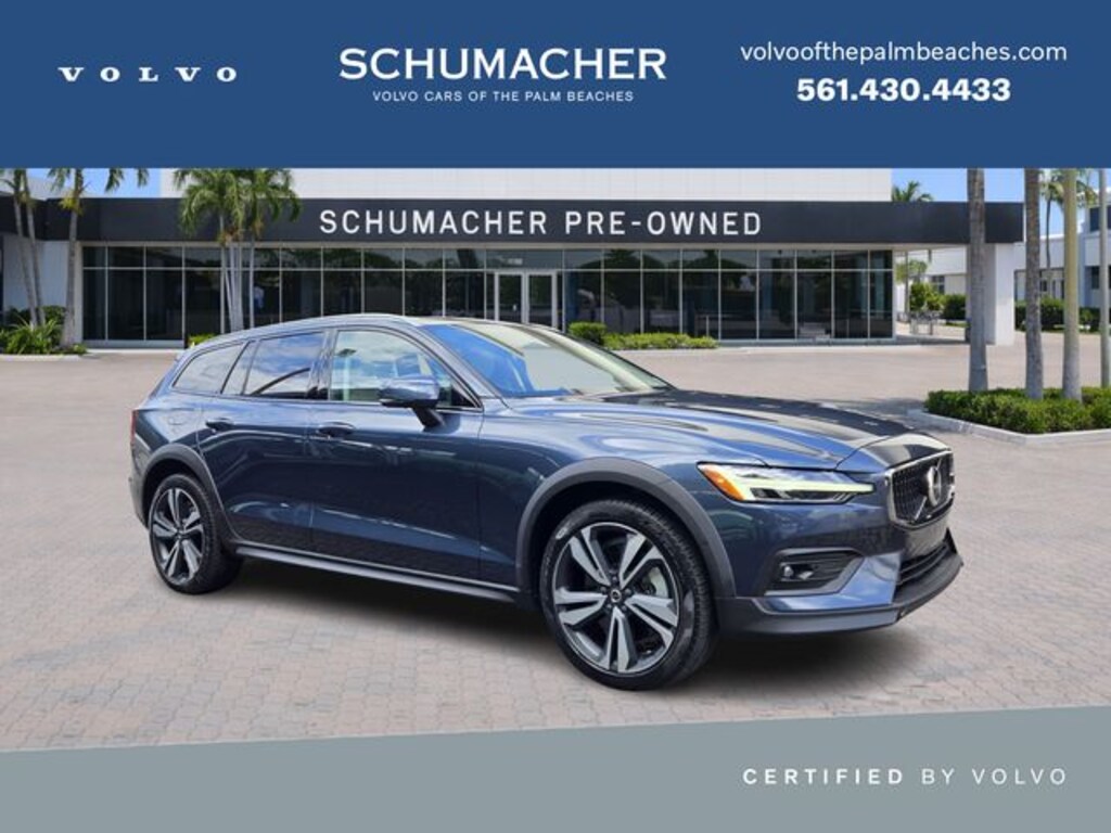 2024 Volvo V60 Cross Country B5 Plus Denim Blue Metallic CARFAX One-Owner. AWD Automatic with Geartronic 2.0L I4 Turbocharged VOLVE CERTIFICATION, V60 Cross Country B5 Plus, 4D Wagon, 2.0L I4 Turbocharged, Automatic with Geartronic, AWD, Denim Blue Metallic, Blond Leather, 10 Speakers, 4-Wheel Disc Brakes, ABS brakes, Air Conditioning, Alloy wheels, AM/FM radio: SiriusXM, Anti-whiplash front head restraints, Apple CarPlay, Auto High-beam Headlights, Auto-dimming door mirrors, Auto-dimming Rear-View mirror, Automatic temperature control, Brake assist, Bumpers: body-color, Delay-off headlights, Driver door bin, Driver vanity mirror, Dual front impact airbags, Dual front side impact airbags, Electronic Stability Control, Emergency communication system: Volvo Cars App w/4 Year Subscription, Exterior Parking Camera Rear, Four wheel independent suspension, Front anti-roll bar, Front Bucket Seats, Front Center Armrest, Front dual zone A/C, Front fog lights, Front reading lights, Fully automatic headlights, Garage door transmitter: HomeLink, Genuine wood dashboard insert, Heated door mirrors, Heated Front Bucket Seats, Heated front seats, Illuminated entry, Knee airbag, Leather Seating Surfaces, Leather Shift Knob, Low tire pressure warning, Memory seat, Navigation system: Sensus Navigation, Occupant sensing airbag, Outside temperature display, Overhead airbag, Overhead console, Panic alarm, Passenger door bin, Passenger vanity mirror, Power door mirrors, Power driver seat, Power moonroof, Power passenger seat, Power steering, Power windows, Radio data system, Radio: High Performance Audio, Rain sensing wipers, Rear anti-roll bar, Rear fog lights, Rear reading lights, Rear seat center armrest, Rear window defroster, Rear window wiper, Remote keyless entry, Security system, Speed control, Speed-sensing steering, Split folding rear seat, Spoiler, Steering wheel mounted audio controls, Tachometer, Telescoping steering wheel, Tilt steering wheel, Traction control, Trip computer, Turn signal indicator mirrors, Variably intermittent wipers, Wheels: 18" 5-Spoke Black Diamond Cut Alloy.